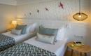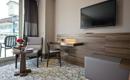 Hotel ima ukupno 360 smještajnih kapaciteta. Tipovi soba u hotelu: superior sobe (24-28m2, 1 spavaća soba, 1 kupatilo, max 2+2 osoba), superior sobe bez balkona/terase (24-28m2, 1 spavaća soba, 1 kupatilo, max 2+1 pax), deluxe suite sa jacuzzijem (73-86m2, 1 spavaća soba sa francuskim ležajem, 1 dnevna soba sa sofa ležajem, 1 kupatilo sa tušem/kadom i 1 sa jacuzzijem, max 4 pax), penthouse suite (56m2, nalaze se na posljednjem spratu hotela, spavaća soba, kupatilo sa dva tuša/kade i dva lavaboa, dva balkona/terase, max 3+1 pax). Svaka smještajna jedinica ima: kupatilo sa kadom ili tuš kabinom, fen, centralnu klimu, direktnu telefonsku liniju, mini bar (voda, mineralna voda, bezalkoholna pića i pivo se dopunjuju svakodnevno), sef, set za kuhanje čaja i kafe, tepih, SAT TV i muzički kanali, Wi- Fi internet.
