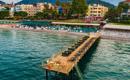 Hotelska, privatna, šljunkovita plaža sa Plavom zastavom koja se nalazi preko puta ulice, 100-150m od hotela. Ležaljke i suncobrani besplatni su za goste hotela, peškiri za plažu uz depozit. Dušeci za sunčanje na molu uz doplatu.