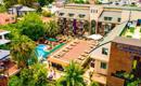 Hotelski kompleks sastoji se od ukupno 5 zgrada u kojima se nalaze Standard sobe (površine 25m², za najviše 2+2 osobe, pogled na bazen ili na park/ulicu), Connecting sobe (površine 40m², dvije sobe povezane vratima, 4 single kreveta + 2 sofe na razvlačenje, 2 balkona, za najviše 6 pax), Family sobe (površine 30m², 2 kreveta + sofa na razvlačenje za 2 osobe, za ukupno 4 pax). Sve sobe imaju kupatilo sa tuš kabinom, LCD SAT/TV, telefon, centralni klima uređaj, mini bar (voda po dolasku), sef (uz doplatu), Wi-Fi internet (uz doplatu), balkon ili terasu.