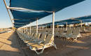 Vlastita, pješčano-šljunkovita plaža 50m od hotela do koje se dolazi podzemnim prolazom. Ležaljke, suncobrani, dušeci i peškiri (dobijaju se uz karticu ) besplatni su za goste hotela. Bar na plaži (besplatno).