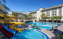 Glavni restoran, 3 A la carte restorana (italijanski, turski, riblji - jednom u toku boravka uz rezervaciju), dijetalni i vegetarijanski meni, 8 barova, Wi-Fi (besplatno na cijeloj teritoriji), 2 otvorena bazena, unutrašnji bazen, 4 vodena tobogana, 2 dječija bazena, dječiji vodeni tobogan, dječiji restoran, dječiji klub (4-12 godina), igralište, klub za tinejdžere, kino sala, konferencijska sala, prodavnica, spa centar, biblioteka, skvoš, odbojka, teniski teren, iznajmljivanje teniskih reketa i loptica, stoni tenis, odbojka na plaži, pikado, mini golf, sauna, animacija, streličarstvo, aerobik, jedrenje (uz dozvolu), košarka, muzika uživo, tursko kupatilo, diskoteka, pucanje iz vazdušne puške, mali fudbal, jacuzzi, akvabik, teretana, parna soba, nemotorizovani vodeni sportovi, boćanje. UZ DOPLATU: masaža, bilijar, časovi tenisa, slot mašine, kuglanje, motorizovani vodeni sportovi, internet cafe, usluge ljekara, dadilje, salona ljepote, pranja, peglanja i hemijskog čišćenja veša.