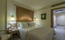 Hotelsku cjelinu čini šest četvorospratnih zgrada koje raspolažu sa Standardnim sobama (od toga 3 sobe za osobe sa posebnim potrebama, max 3 osobe, 27 m2), Porodične sobe (dvije spavaće sobe odvojene vratima, 2 TV, max 4 osobe, 34 m2), Trosobni Royal apartmani (sa pogledom na more, dnevni boravak, 2 spavaće sobe odvojene vratima, 2 kupatila (jedno sa jacuzzi-jem), 2 TV-a, 2 balkona, max 4 osobe, 85 m2). Svaka soba ima Wi-Fi (besplatno), mini bar (besplatno), sef (besplatno), klima uređaj (centralni), papuče, bademantil, fen, TV, balkon, set za kafu i čaj, telefon, balkon.