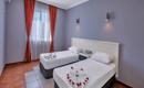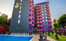 Hotel se sastoji od jedne glavne šestospratne zgrade koja ima: 25 standardnih soba (površine 24m², za najviše 2 osobe) i 93 porodične sobe (2 sobe odvojene vratima, površine 32m², za najviše 4 pax). Sve sobe imaju: kupatilo sa tuš kabinom, fen za sušenje kose, individualni klima uređaj, LCD SAT TV, telefon, mini bar (uz doplatu), sef (uz doplatu), WiFi internet (uz doplatu), balkon.
