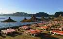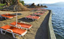 Plaža je, kao i ostatak hotela, okružena bujnim zelenilom, sa mnogo prirodnog hlada. Čini je platforma nasuta peskom, voda je pri obali plitka, a gosti u vodu ulaze uz pomoć ljestvi. Ležaljke i suncobrani na plaži su besplatni za goste hotela, a peškiri za plažu se dobijaju uz depozit.