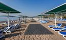 Hotel ima vlastitu šljunkovitu plažu koja je udaljena 90m i do nje se prelazi ulica. Ležaljke, suncobrani, dušeci, peškiri i bar na plaži i na bazenu besplatni su za goste hotela. Baldahini uz rezervaciju i doplatu.