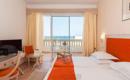 Hotel se sastoji od jedne četverospratne zgrade u kojoj se nalaze 281 soba i 4 apartmana. Standard sobe (površine 25m², francuski krevet ili 2 singl kreveta uz mogućnost dodavanja 2 pomoćna kreveta po potrebi; za najviše 3 odrasle osobe i jedno dijete). Sve sobe imaju kupatilo sa tuš kabinom, fen za sušenje kose, klima uređaj, LCD SAT TV, WiFi internet, mini frižider, balkon ili terasu. Postoje i sobe sa pogledom na more.