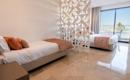 Hotel raspolaže sa ukupno 227 soba. Standard sobe (površine 29m², francuski ležaj ili dva single kreveta + kauč na rasklapanje; pogled na baštu, pogled na bazen ili direktni pogled na more; za najviše 2+1pax), Swim Up sobe (površine 29m², jedna prostorija, francuski krevet, izlaz na bazen; za najviše 2 osobe). Sve sobe imaju kupatilo sa tuš kabinom, fen za sušenje kose, klima uređaj, LCD SAT TV, mini bar, WiFi internet, sef, balkon ili terasu. Neke standard sobe imaju jacuzzi kadu.
