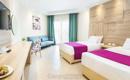 Hotel raspolaže sa više od 500 soba u glavnoj i nekoliko anex zgrada. Superior/Standard sobe (površine 40m², francuski ležaj ili 2 odvojena ležaja + soba na razvlačenje ili pomoćni krevet, za najviše 3 odrasle osobe i jedno dijete ili 2 odrasle osobe i 2 djece; balkon; pogled na bazen, bočni pogled na more ili direktni pogled na more), Deluxe sobe (površine 40m², francuski ležaj ili dva odvojena kreveta + sofa na razvlačenje ili pomoćni krevet za najviše 3 odrasle osobe ili 2 odrasle osobe i dvoje djece; balkon; pogled na bazen, park, bočni pogled na more ili direktni pogled na more). Ovaj tip soba je kompletno renoviran. Junior suite sobe (površine 93m², spavaća soba sa francuskim ležajem i kupatilom, dnevni boravak sa zasebnim kupatilom, 2 balkona, za najviše 2 odrasle osobe i jedno dijete; pogled na more). Sve sobe imaju kupatilo sa tuš kabinom, fen za sušenje kose, mini bar, WiFi internet, telefon, sef, LCD SAT/TV, kuhalo za kafu/čaj.