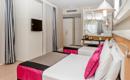 Hotelsku cjelinu čine Standardne sobe (20m2, spavaća soba, kupatilo, max 2+1 osoba), Standard sobe sa krevetima na sprat (32m2, velika soba sa francuskim ležajem i krevetima na sprat, max 2+2osobe), Porodične sobe (34m2, dvije spavaće sobe odvojene vratima, 1 spavaća soba sa francuskim ležajem, druga sa krevetima na sprat, 1 kupatilo, max 2+2 osobe). Sve sobe imaju kupatilo sa kadom ili tuš kabinom, fen, centralnu klimu, mini bar (voda i mineralna voda), sef (uz doplatu), SAT/ TV , balkon ili terasu, fen za sušenje kose.