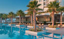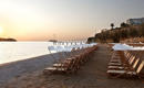 Plaža je dijelom šljunkovita, a postoje i platforme za sunčanje i kupanje. Ležaljke, suncobrani i peškiri za plažu su besplatni za goste hotela.