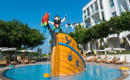 Glavni restoran, 2 a la carte restorana (italijanski i mediteranski – besplatno), 7 barova, 2 vanjska bazena, zatvoreni bazen, WiFi internet u lobiju (besplatno), internet cafe (besplatno), teretana, teniski teren (šljaka), košarka, stoni tenis, pikado, odbojka na plaži, futsal, kuglanje, animacije, aerobik, akvabik, dječiji klub (za uzrast 4-12), dječiji meni u restoranu, vanjski i unutrašnji dječiji bazen, piratski vodeni tobogan, igralište za djecu. Plaća se: sauna, tursko kupatilo, parno kupatilo, masaže (Spa centar Shang-Du se nalazi u zasebnom trospratnom bloku), sportovi na vodi, frizerski salon, usluga pranja i peglanja veša, doktor na poziv, usluga dadilje.