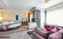 Hotel se sastoji od glavne petospratne zgrade, 8 blokova (3-4 sprata), 9 vila. Courtyard Suite je površine 51 m2, ima jednu spavaću sobu, balkon, sofu za dvoje na rasklapanje, kupatilo sa tušem i kadom. Sunset Suite je površine 70 m2, nalazi se u vrtu, ima spavaću i dnevnu sobu i ostalu opremu kao Courtyard Suite. Sve sobe su izuzetno luksuzno opremljene, imaju centralni klima uređaj, LCD TV sa satelitskim kanalima, WiFi internet (besplatno), mini-bar (besplatan, obnavlja se jednom dnevno osvježavajućim pićima i pivom), sef (besplatno), ketler, set za kafu i čaj, fen za sušenje kose, balkon ili terasu (ili francuski balkon).